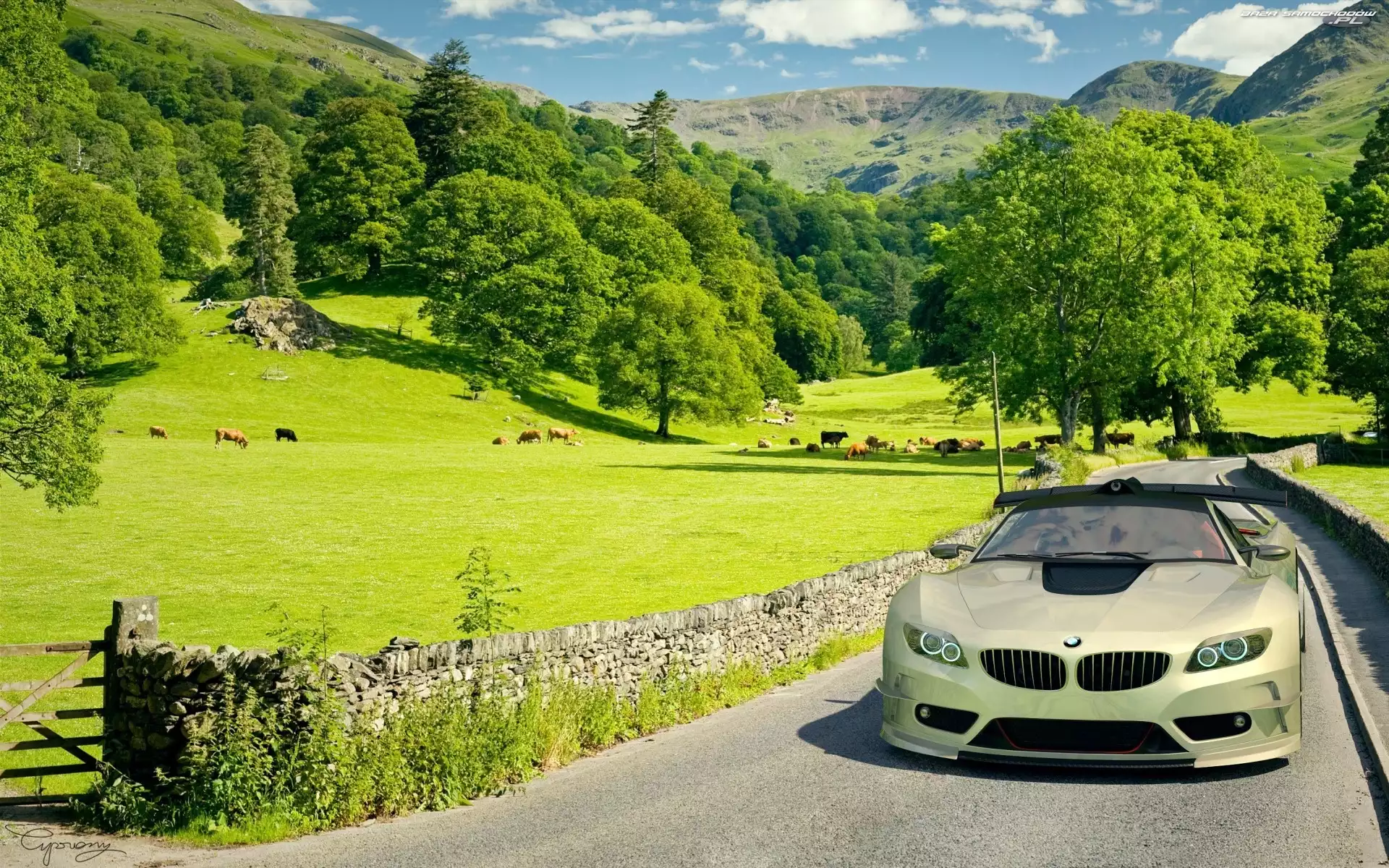Samochód: BMW, Krajobraz, Oliwkowe, Droga