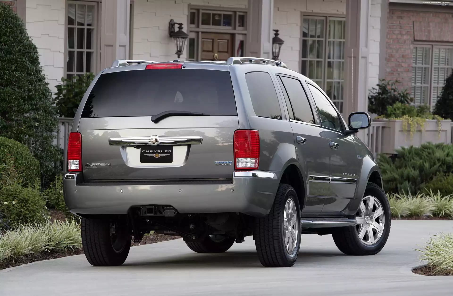 Grill, Chrysler Aspen, Halogeny Maska, Chrysler Aspen, Profilowana Chrysler Aspen, Reflektory Hemi, Chrysler Aspen, Hybrid Chrysler Aspen Hybrid, Chrysler Aspen, Silnik Reflektory, Czarny, Chrysler Aspen Pasażera, Chrysler Aspen, Strona Alufelgi, Chrysler Aspen, Potężne Bagażnik, Tył, Chrysler Aspen, Lampa Fotele, Chrysler Aspen, Tylne Chrysler Aspen, Fotele Góry, Błękitny, Chrysler Aspen Szyby, Chrysler Aspen, Przyciemnione