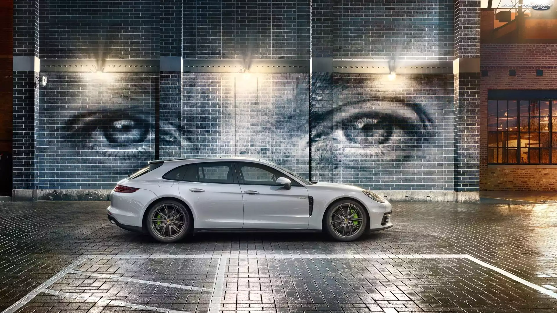 Samochód: 2017, Street art, Porsche Panamera 4 Sport Turismo, Ściana