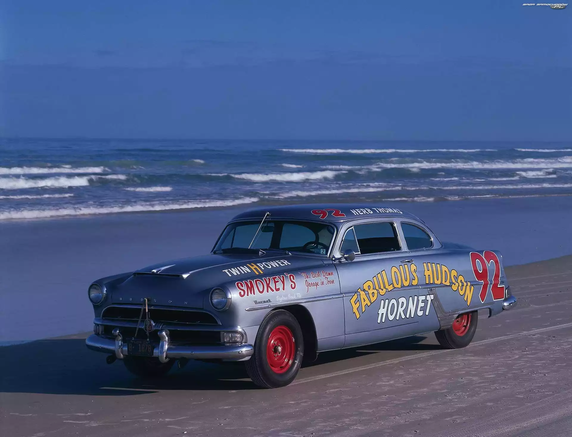 Hornet, Zabytkowy, Plaża, Morze, Hudson, 1954- Zdjęcia samochodów