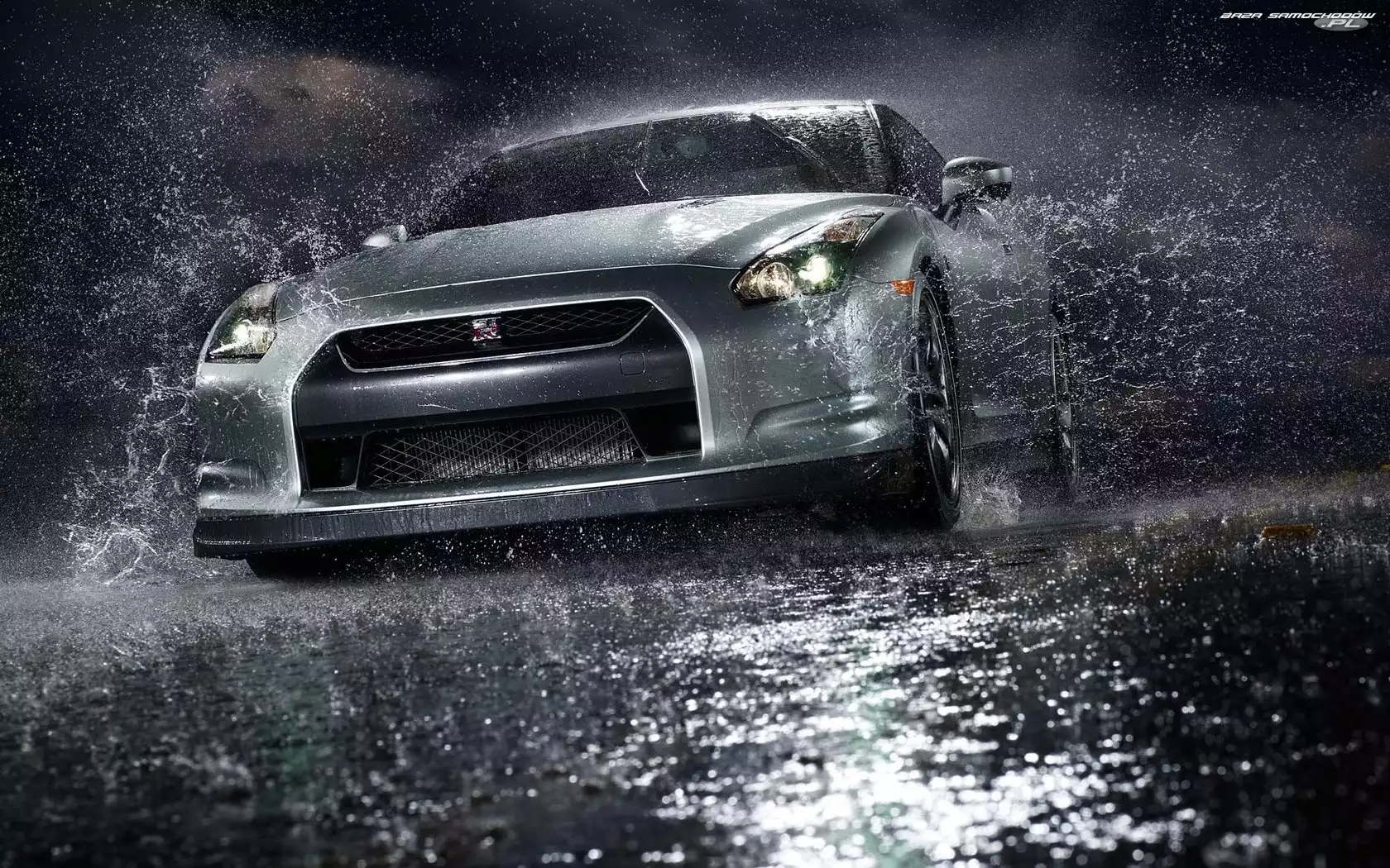 Nissan GTR, Deszcz, Noc- Zdjęcia samochodów