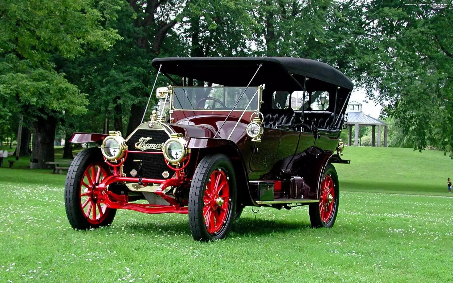 Samochód: Thomas, Samochód, Drzewa, Trawa, Zabytkowy, Flyer 1912