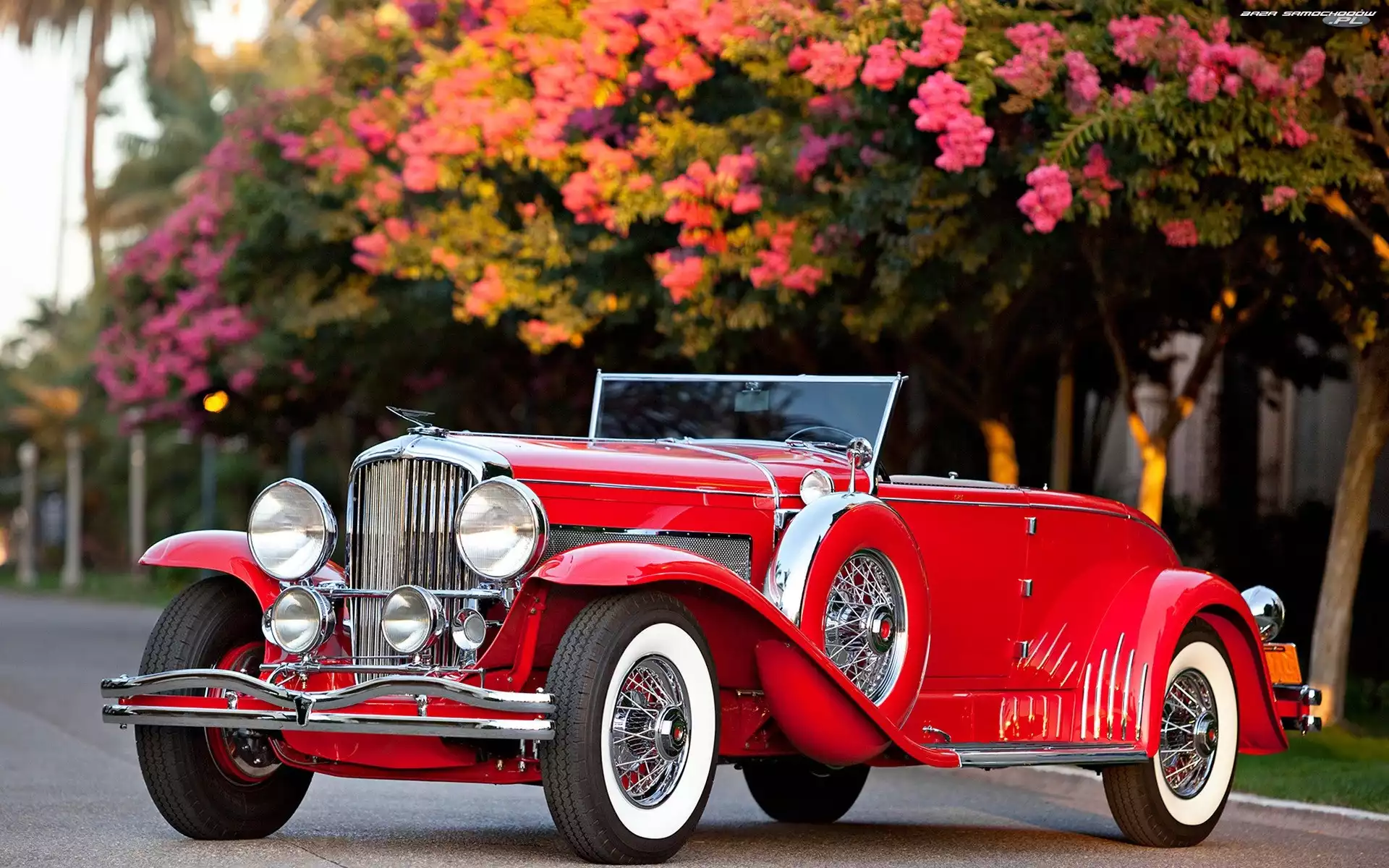 Zabytkowy, Kwiaty, Samochód, Czerwony- Zdjęcia samochodów